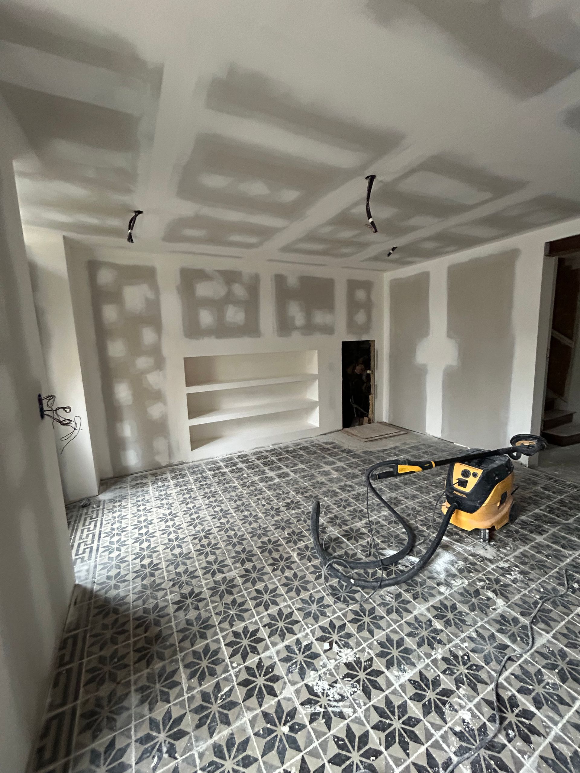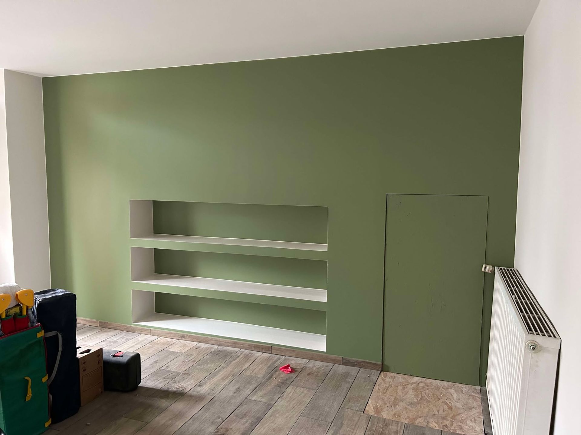 Explorez tous mes chantiers et réalisations de peinture, pose de papier peint, revêtements de sol et construction de cloisons.